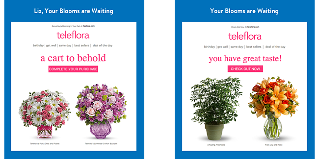 Teleflora just utilized the recipient’s name in the cart abandoned email subject line in the example below. And it resulted in a threefold increase in orders.