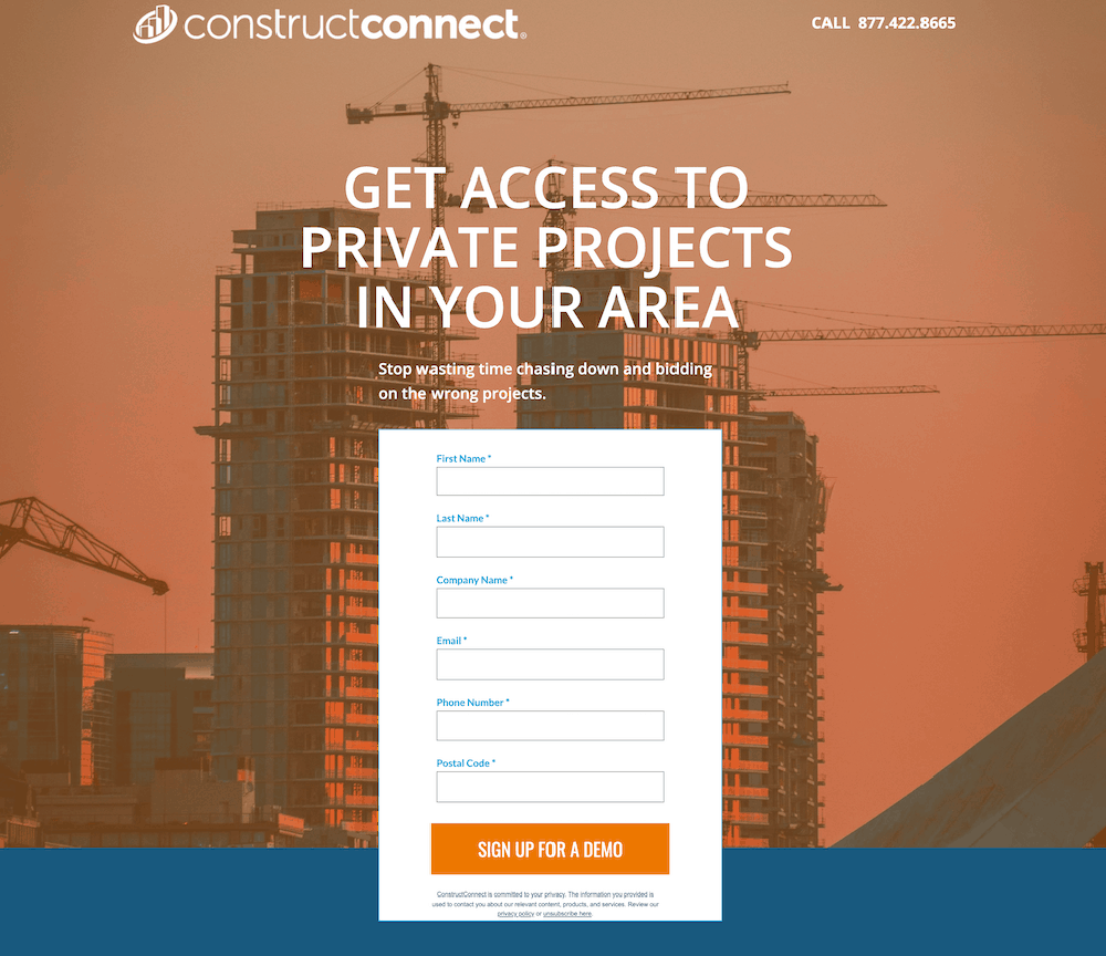 By altering the background picture on their landing page, ConstructConnect saw a 35 percent boost in conversions.