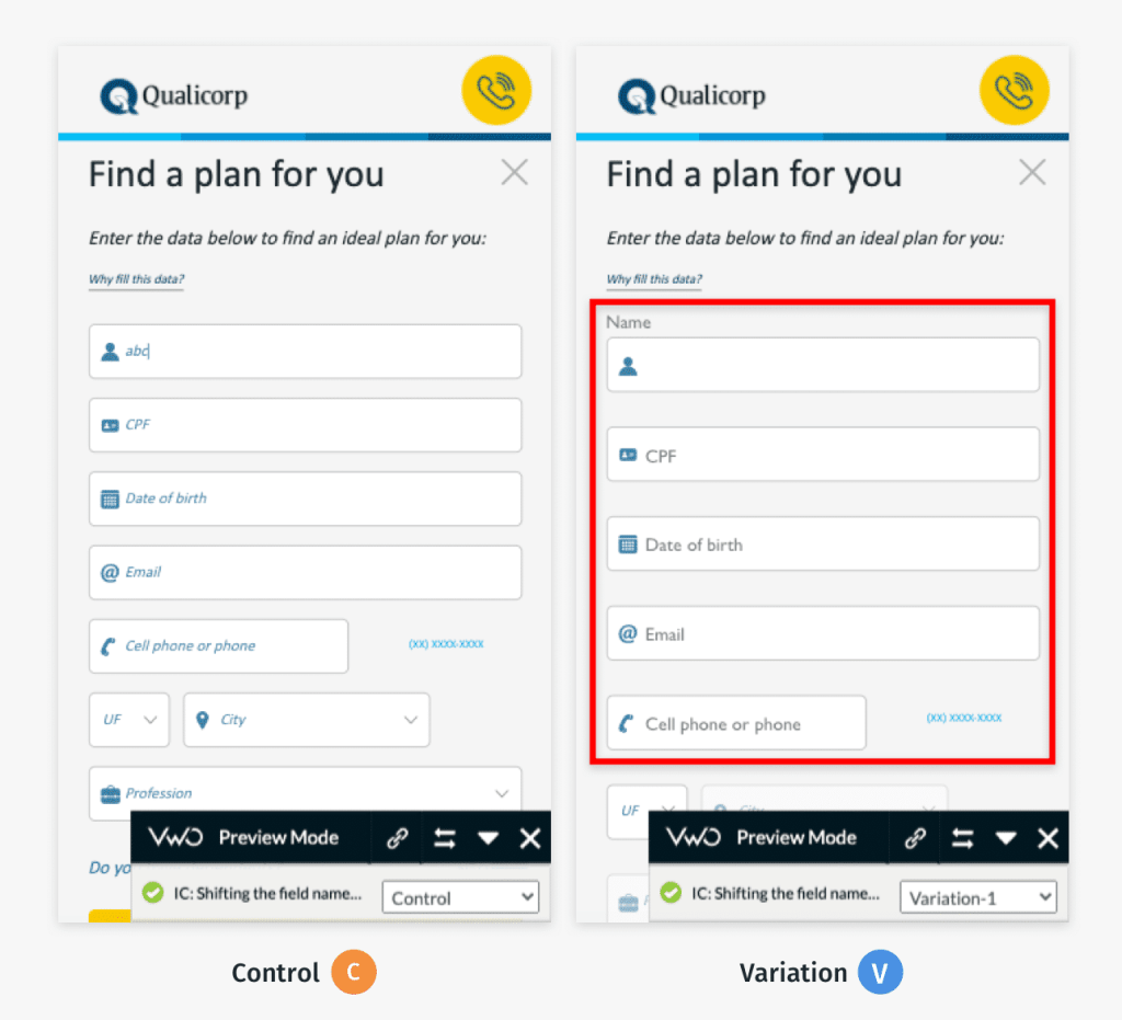 Qualicorp modified a few forms on its website and did A/B testing on them. Overall conversion rates rose as a result of the new forms.