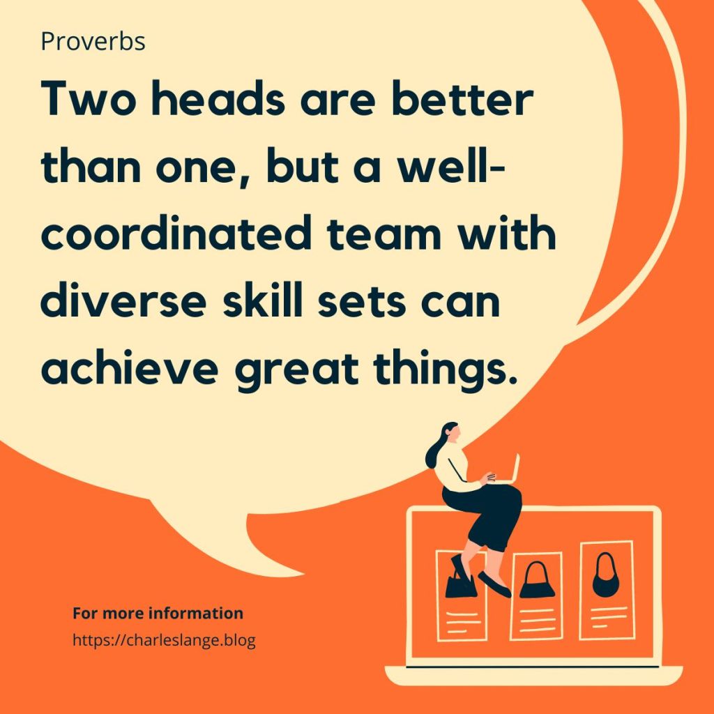 In conclusion, while “two heads are better than one,” a well-coordinated team with diverse skill sets can achieve great things. Effective teamwork, communication, and diversity in skill sets are essential factors in achieving success. Organizations that invest in building strong teams can benefit from greater innovation, creativity, and inclusivity. It is important to recognize the challenges that diversity can present and to create an inclusive environment where everyone feels valued and heard. By doing so, organizations can achieve their goals and make a positive impact on the world.